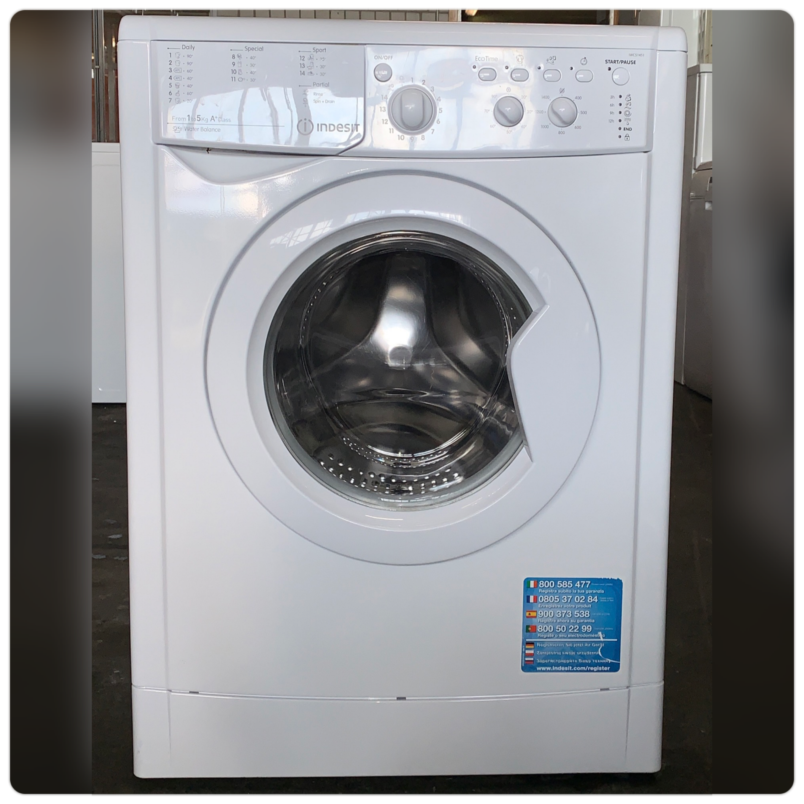 Refurbished Tweedehands INDESIT IWC51451EU wasmachine/ met Eco Time / 5kg / €199,- / INDESIT behoort net als WHIRLPOOL, BAUKNECHT tot de Whirlpool Corporation / Bezorgen Aansluiten oude Gratis Afvoeren / Stuur een chatbericht of App/Bel ons op (+31)252-769214 / Like or Follow us for Restock-Alerts!