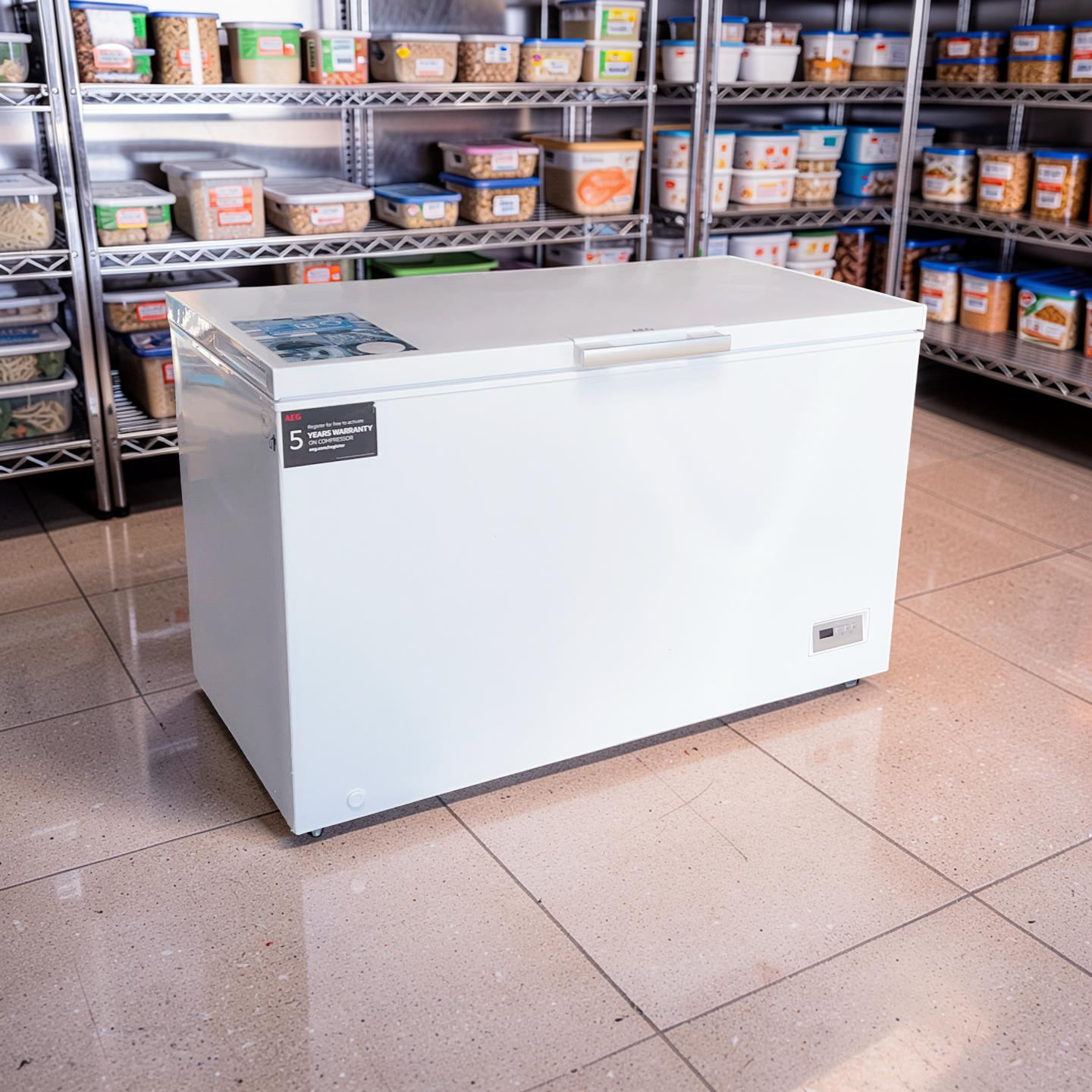 Refurbished Tweedehandse AEG AHB538E1LW Vrieskist / 317 liter / 130cm / Afhalen of Bezorgen Aansluiten Oude Gratis Afvoeren / Stuur ons hier een chatbericht / Follow or like us for Restock Alerts!