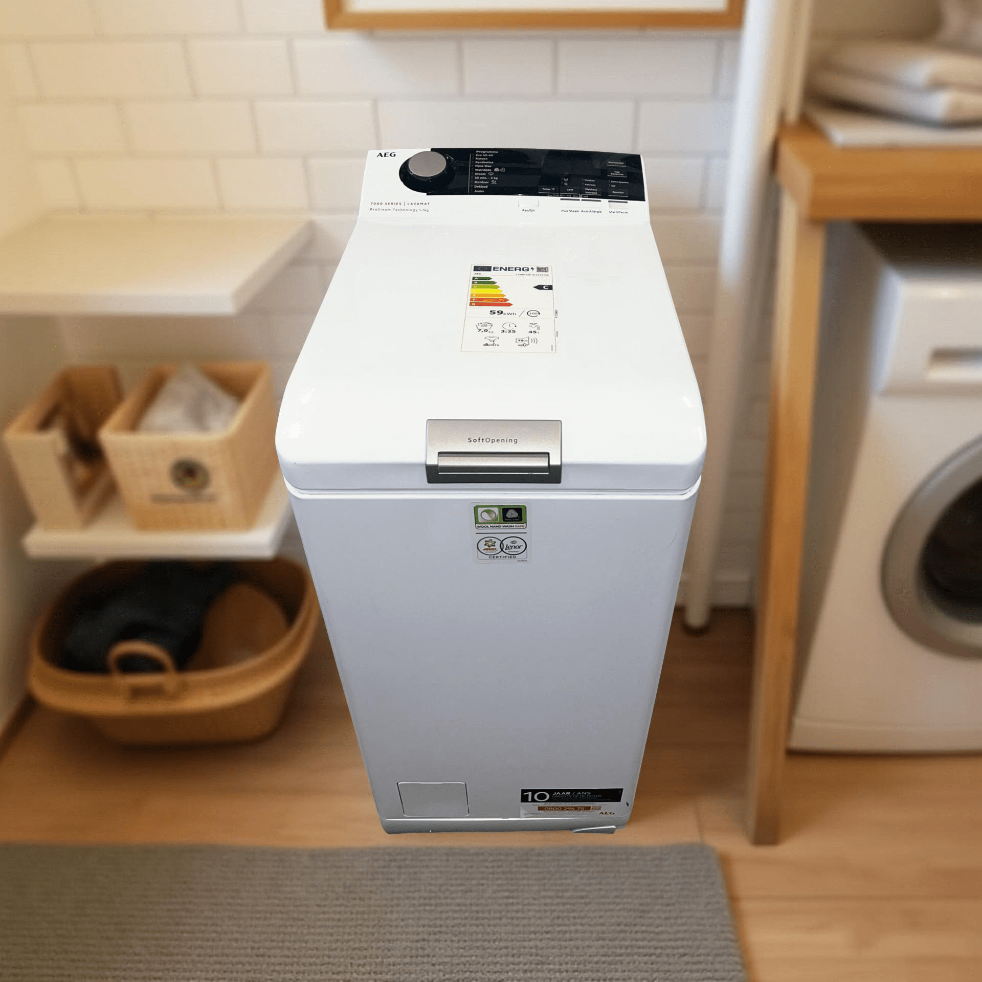 Wasmachine Bovenlader AEG 7000SERIES Smal 40cm 7kg L7TBN73E €239,-