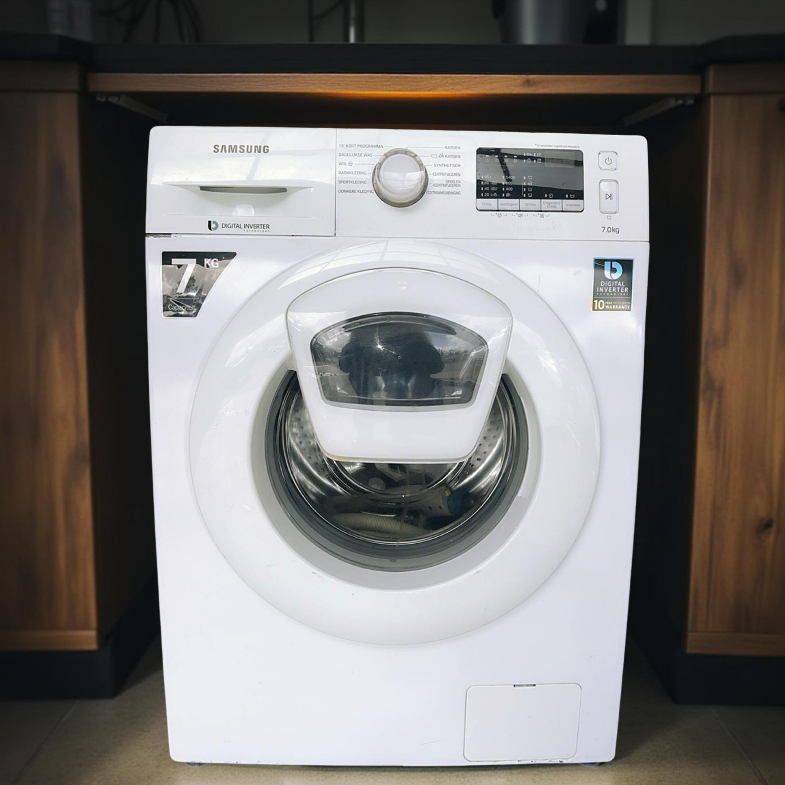 Refurbished Tweedehands SAMSUNG WW70K4420YW ADDWASH Wasmachine / met Smart Check / Energielabel A+++ -/- 10% / 7kg / 1400 toeren / Afhalen of Bezorgen Aansluiten Oude Gratis Afvoeren / Stuur ons hier een chatbericht  / Follow or like us for Restock Alerts!